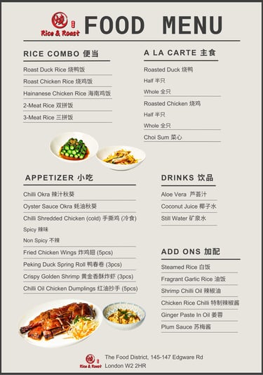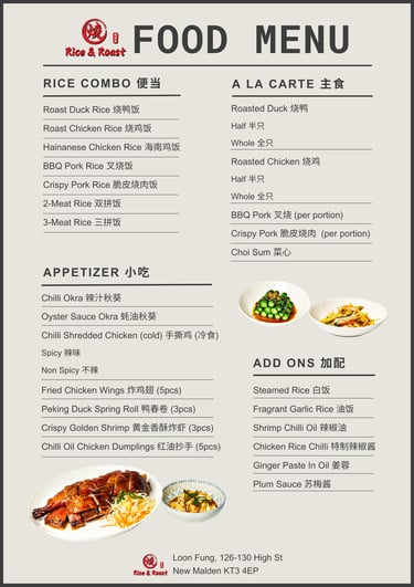 While our roots are in Malaysia, we are proud to share this legacy with the London community — serving roast meats and rice the traditional way, with respect for heritage and love for food.