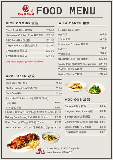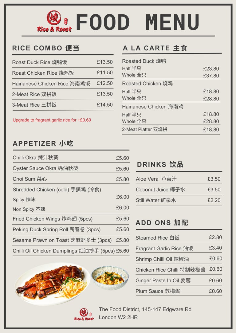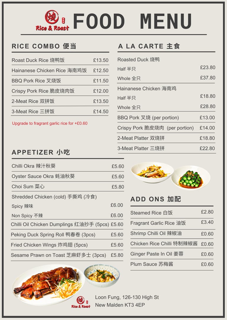 While our roots are in Malaysia, we are proud to share this legacy with the London community — serving roast meats and rice the traditional way, with respect for heritage and love for food.